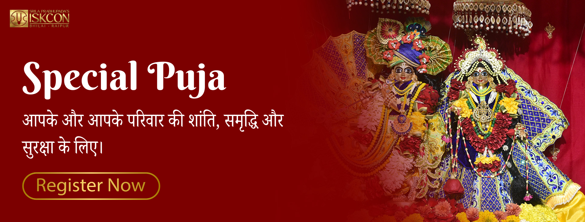 इस्कॉन भिलाई में, हमारा विश्वास है कि जो समाज प्रार्थना के सूत्र में बंधा होता है, वह सदैव भगवान की कृपा से सुरक्षित रहता है। दैनिक जीवन की भागदौड़ के बीच, आपके आध्यात्मिक परिवार के रूप में भगवान के समक्ष आपको और आपके परिवार को स्मरण करना हमारा सौभाग्य है।
